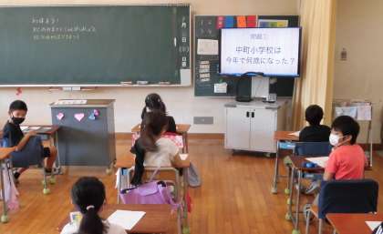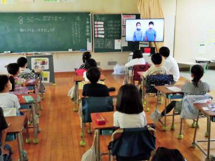 今日は、本校64周年の開港記念日でした。代表委員会の児童が企画し、校内テレビ集会を行いました。校長先生の挨拶、学校クイズ、学校ビンゴを全校児童で楽しみました。