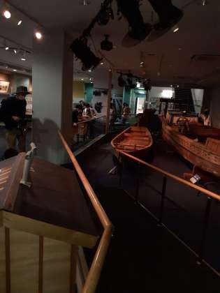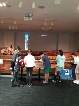 クラスごとに分かれて見学をしています。大きな模型や資料を見てメモをとっています。