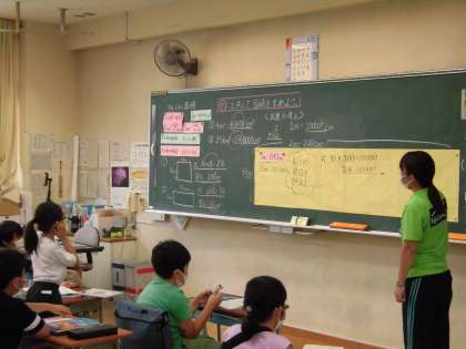 4年生の算数では面積の求め方を学習していました。縦50cm、横2mの長方形の面積の求め方を考えました。単位をそろえることを学習し、正しく面積を求めることができました。