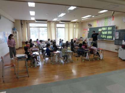 明日で教育実習生の実習期間が終わります。最終日には、校内の先生がたくさんいる中で、実習生は授業を行います。今日は、その本番の1時間前の場面でした。子どもたちも一生懸命に発言し、授業に取り組んでいました。