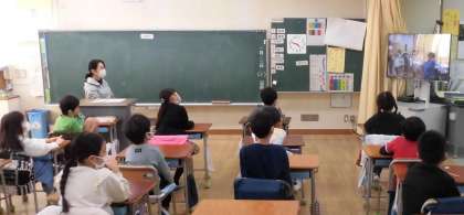 5年生が合唱をしました。「Wish〜夢を信じて」をソプラノ、アルトに分かれてハーモニーを響かせてくれました。他の学年は校内テレビ放送でじっくりと聞いていました。