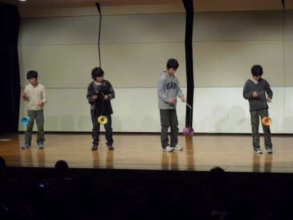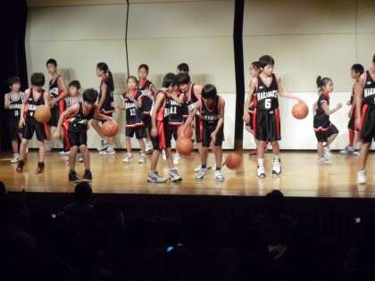 フラダンスはリコ・レフアチームによる踊りでした。ディアポロというコマのような道具を上手にあやつり、技を披露したのは、チーム・ディアポロでした。森の児童館で練習しているそうです。中町ミニバスケットボールクラブはダンスと巧みなハンドリングを披露してくれました。ポップな音楽に会場から拍手が続きました。