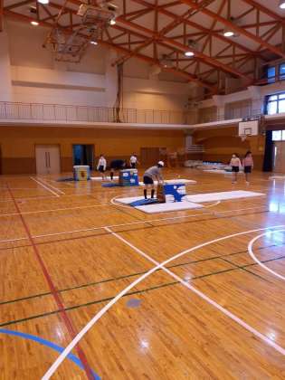 6年生は、体育館で器械運動です。跳び箱で個々の課題にそって練習しています。