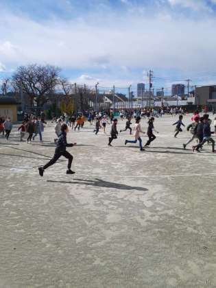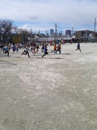 中休みは、持久走に取り組んでいます。今日は2.4.6年生が自分のペースで走ります。