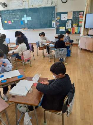 2年生は、図工で鬼のお面づくりに挑戦します。どんな鬼のお面ができるか楽しみです。算数の授業では、正方形や長方形を生かして箱作りに取り組むところです。