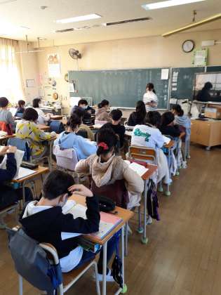 6年生は、国語の授業です。教科書を読んだり、文法について調べたりしていました。