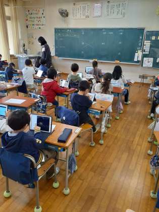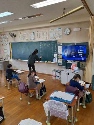 1年生の教室では、国語と生活科の学習に取り組んでいました。国語では、かたかなのかたち について、生活科では もうすぐ2年生 の学習でタブレットを使ってこれまでの学習を振り返っていました。