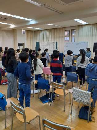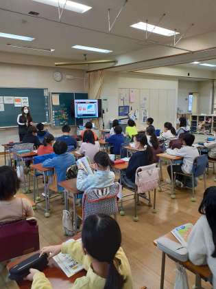 4年生の授業は、音楽と外国語の授業でした。音楽は きずな という曲を合唱していました。外国語の授業では動画に合わせて発声練習をしていました。