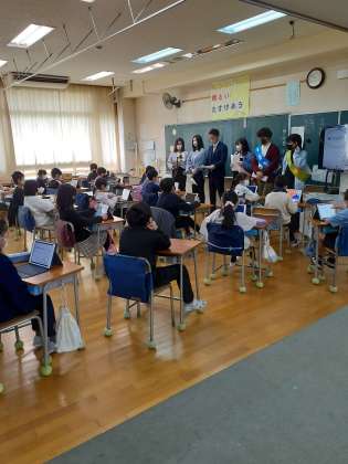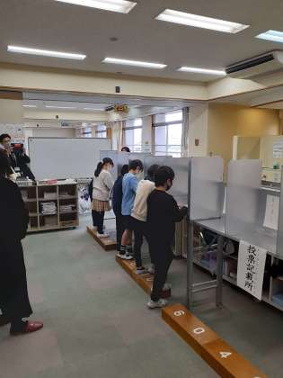 若者の投票率がなかなか上がらない中、もっと身近に選挙を考えてもらおうと、区の選挙管理委員会が多摩美術大学と連携し、小学生への模擬投票体験を企画してくれました。学年は3年生、3年生は社会科て世田谷区のことを学んでいます。大学生が3名、中町小の中休みをどう楽しくするかで立候補し、アピールしました。子供たちは話をしっかり聞き、質問をして投票しました。投票箱や候補者を書くボックスも本物を持ってきてくださり、よい体験になりました。