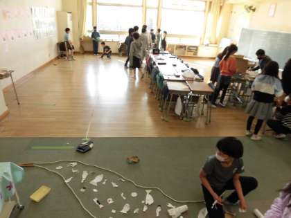 今日は、全校行事のこどもまつりを行いました。全学年で交流することは控えましたが、きょうだい学年での開催としました。教室や体育館を使って、こどもたちが考えたコーナー(お店)を作りました。学年によっては、今年学習したことをいかして、お店にいかしているようすが見られました。
