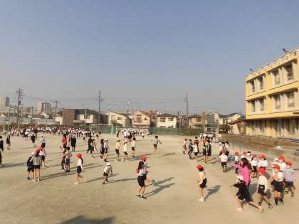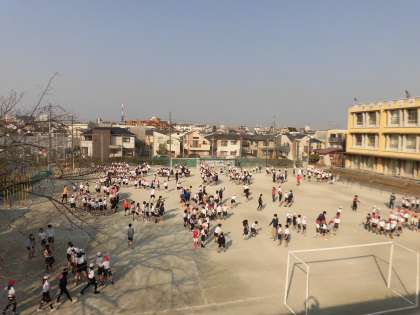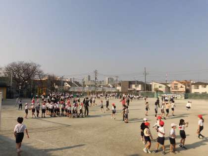 本日は、今年度最後の体育朝会がありました。全学年が校庭で長縄跳びをしました。各クラスで団結して行う機会もあとわずかとなりました。子どもたちの回数を数える元気な声が聞こえてきました。