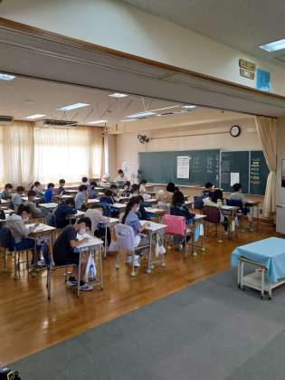 今日は、世田谷区の小学校4年生から6年生まで一斉に学習習得調査です。国語、算数、理科、社会の4教科を行います。4年生は初めての経験になりますが、一生懸命取り組んでいます。