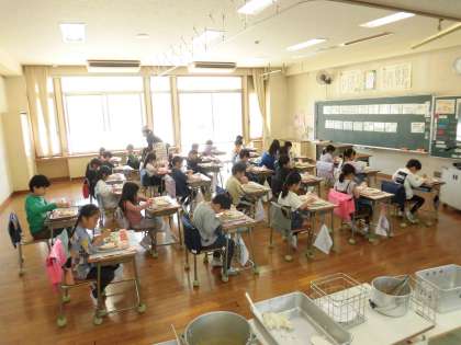 ※中町小学校HP>給食 にて、基本的に毎日写真を更新しています。こちらもご覧ください。