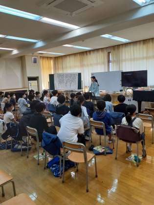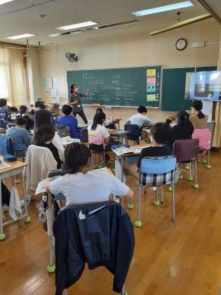 6年生は、音楽と英語の学習です。音楽では、先生の話をしっかり聞いて活動に取りかかるところでした。英語の学習では、自己紹介のことについて学んでいました。