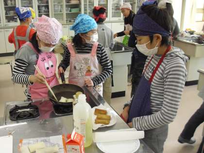 おだやかな冬晴れの1日でした。本日のインフルエンザによる欠席は4名になりました。激減です。ただ風邪の人は12名いますのでやはり用心しましょう。今日から23日木曜日まで学校公開週間が続きます。時間の許す保護者の方や地域の方は、ぜひおいで下さい。1年生は図工の時間に、ランチョンマットの絵を描いていました。中町幼稚園との交流給食でプレゼントするそうです。3年生は総合の時間に「トンボにとってよいビオトープはどんなところか」を学習していました。5年生は家庭科「かしこい消費者になろう」で、調理実習をしていました。はるまき、野菜炒め、サラダ。しっかりと料理になっていました。