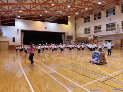 4年生は運動会に向けて表現の練習を行っていました。太鼓、バチを持って、雰囲気が出てきました。体育館で基本の動きを学んでいきます。