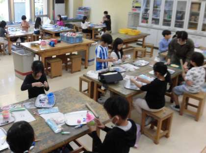 3年生は、図工で色粘土をつくり、様々な形を作ってカップに貼り付けていました。夢中になって取り組んでいました。