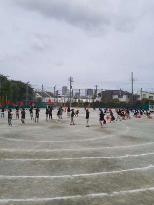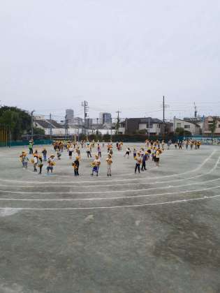 今日は朝から運動会のリハーサルです。明日の天気予報は晴れ、体調を整えて臨みます。写真は、1、2年生です。