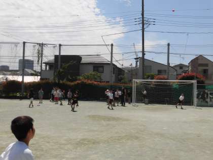 校庭では、紫陽花がきれいに咲いています。キックターゲット、ビュンビュンシャトル(投げ)を元気に活動していました。