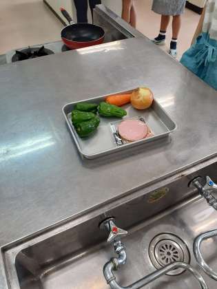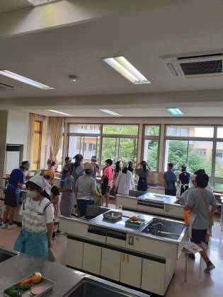 6年生は調理実習です。しっかり手を洗い、これから野菜を切っていきます。グループで仕事を分担して安全第一で取り組みます。