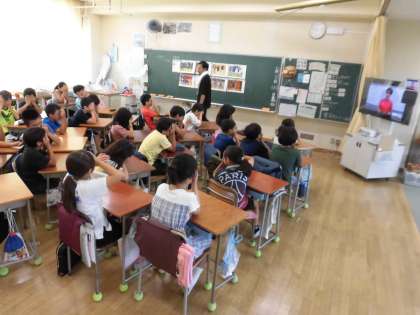 4年生を対象に日本障がい者連盟の方よりオンラインで「デフフットサル」「ロービジョンフットサル」を通して、視覚障害について学びました。写真は、目を閉じて、両手で目を塞いでいる状態が、ブラインドサッカーの選手の視界であることを体験しています。その他、ロービジョンフットサルは、うすい透明のクリアファイルを通したような視界であることなど、とても集中して話を聞いていました。