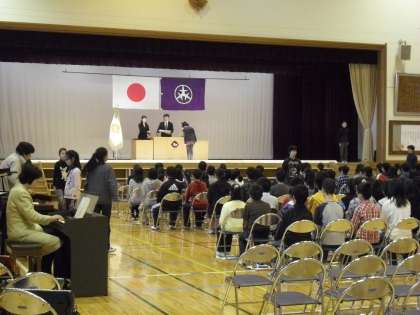 本日、4年生までの児童は修了式を終え、春休みになりました。明日23日は卒業式。5年生が在校生の代表で参列します。各教室はしっかりと掃除をして、次に使う人たちのために準備ができました。今日は、卒業式の予行練習を行いました。体育館に緊張感が張りつめ、明日の成功を予感させる様子でした。あとは気になるのは天気のみ。晴天で卒業生の船出を祝いたいものです。
