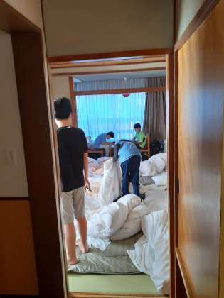 全員元気一杯2日目の朝を迎えました。これから片付けて朝会です。