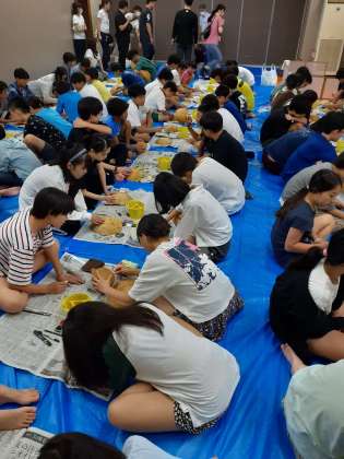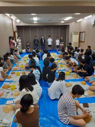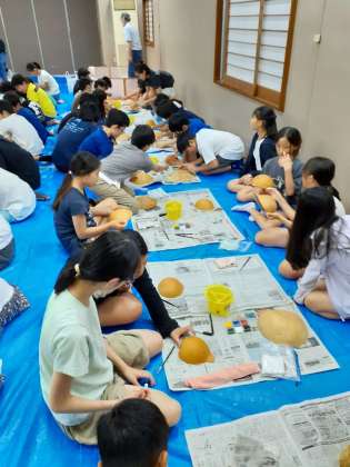 今日の夜は、栃木県の伝統工芸品ふくべ作りです。材料はかんぴょうのもとになるゆうがおという植物の実です。思い思いの絵を描きます