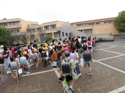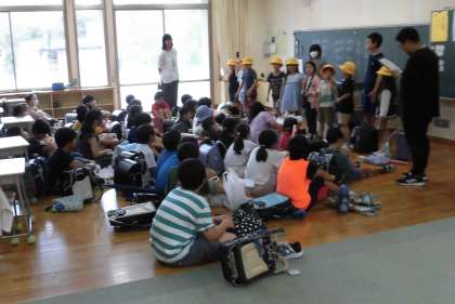本日は、全校児童で校外班活動を行いました。地域ごとに班に分かれて教室に集まり、自己紹介をしました。下校には、教員も途中まで引率し、下校を見守りました。