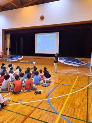 今日は朝から愛媛県の愛南町から役場の方や漁協の方が来て、5年生に水産業の体験学習をしていただきました。魚の取り方や養殖の様子を映像を交えて解説していただきました。そして、天然の鯛と養殖の鯛、カツオを比べたりさわったりすることができました。この後の水産業の学習にに生かしていきます。