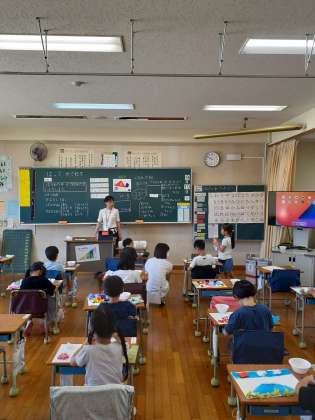6年生は、インフルエンザによる閉鎖から復帰しました。まだ、欠席が目立ちますが、明日以降戻ってくる予定です。これは、英語の授業です。1年生の図工では、お花がみを重ねて貼って表現する活動、生活科では、校内で見られる生き物を発表していました。