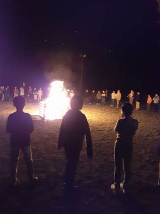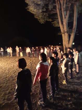 外はすでに真っ暗、待ちに待ったキャンプファイヤーの時間です。マイムマイムやジンギスカンなどの元気な躍りからスタートです。