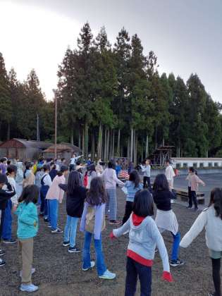 かなり冷え込んだ朝です。ラジオ体操を行い、二日目のスタートです
