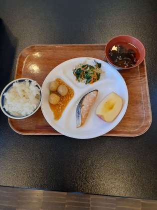 川場村のヨーグルトやりんごがついたすてきな朝食です。