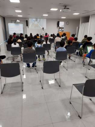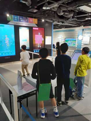 東芝未来科学館に到着しました。サイエンスショー、その他にたくさんの展示があります。体験するものもあり、楽しんでいます。