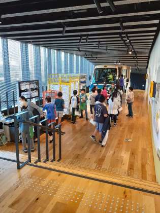 クロネコヤマトミュージアムで、運送業について学習しています。写真は体験コーナーです。