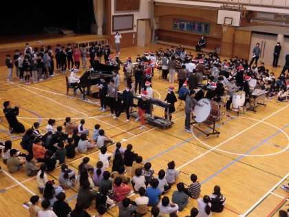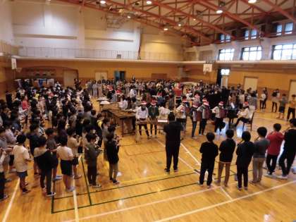 今朝は、音楽朝会を体育館で行いました。「赤鼻のトナカイ」を6年生有志による合奏に合わせて、全校児童で演奏しました。6年生有志は、休み時間に音楽室で練習を重ねて今日をむかえました。合奏を楽しんでいることが様子から伝わってきました。ほかの学年も鍵盤ハーモニカ、リコーダー、歌などそれぞれに楽しい音楽朝会となりました。