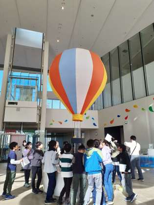 ガスで温められた空気で、熱気球が浮かびます。「おおー!」と声が上がりました!