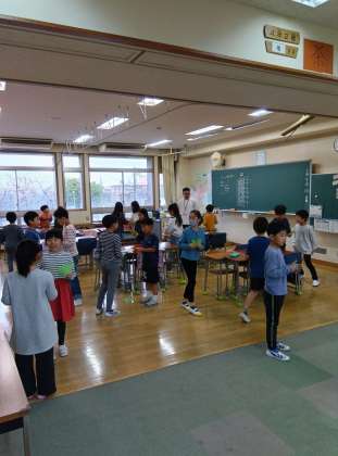 1は、1年生、2年生、3年生です。2は、4年生、5年生、6年生の様子です