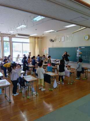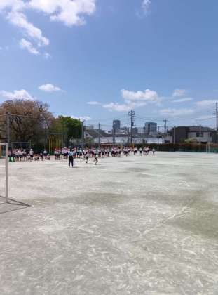 今週から本格的に授業がスタートしています。4年生は体育で50メートルのタイムを、6年生は国語で漢字の学習、1年生は音楽で楽しく踊っていました