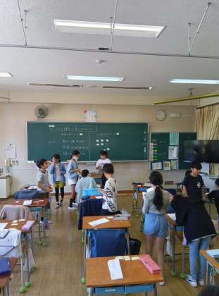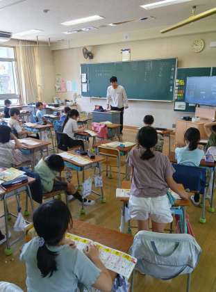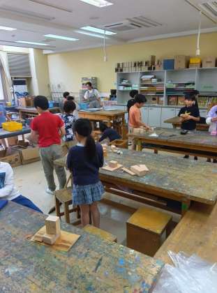 3年生は国語の授業で漢字の練習に取り組んでいました。4年生は社会科の授業で作成した東京都の様子を知らせるパンフレットに、友達がコメントを書いていました。また、図工ではノコギリを使って木材を切り、加工していました。