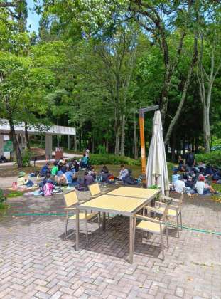 ふじやまビレッジに到着しました。全員元気で、開室式を終えて昼食です。