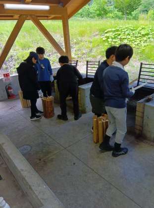 夕食はカレーです。火起こしの担当、野菜を切る担当、全員で一生懸命働いて、本当に美味しいカレーが出来上がりました。