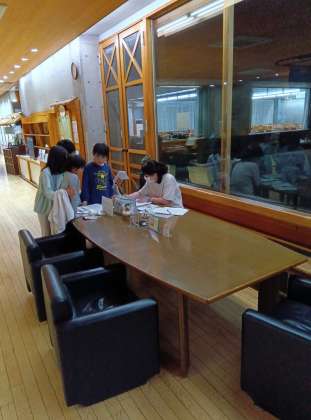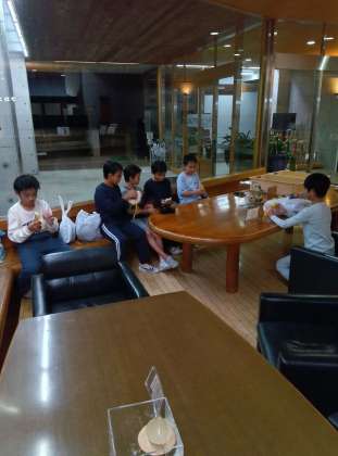お風呂上がりは、バナナで栄養補給です。おいしそうに食べています。もうひとつ、大事な検温カードのチェックを受けます。
