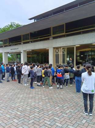 曇り空ですが、全員元気一杯2日目の朝を迎えることができました。ラジオ体操をして朝食準備です。