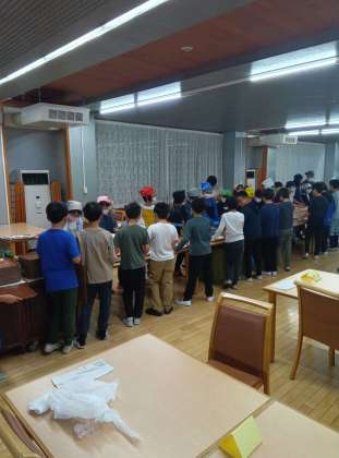 宿舎で食べる最後の朝食です。食事係は最後までよく働いてくれました。