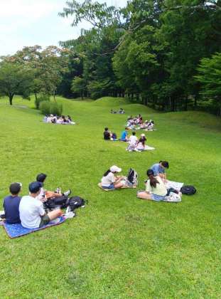日光大谷川公園に着きました。みんな元気に昼食です。