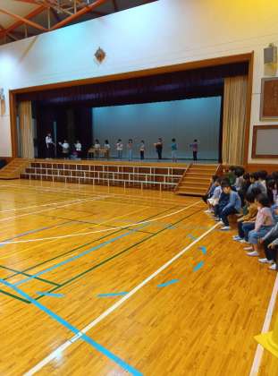 学習発表会が近づいて、練習にも熱が入ってきました。本番が楽しみです。写真は一年生と4年生です。