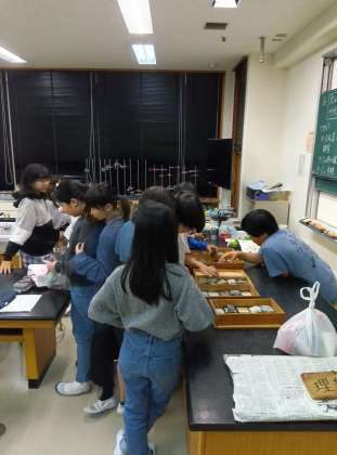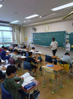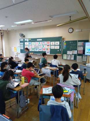 6年生の理科では、大地のつくり の学習で地層のできかたや岩石について調べています。もうひとクラスは英語の学習に取り組んでいました。5年生の算数では、分数の割り算の学習でした。約分や仮分数の処理についても学んでいます。