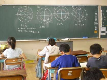 先週の月曜日にプール開きをしたものの、入れたのは2日間。今週はいつから入れることやらという涼しい日が続きそう。プールも淋しげにみえます。でも子どもたちは元気に生活しています。五年生の廊下には水槽がずらり。理科の勉強でめだかを飼育しています。ほかにも金魚やカメもよく飼われています。四年生の教室では算数の学習。いろいろな四角形を描いていました。みんな真剣な様子で取り組んでいました。もうじき7月。梅雨が終われば、暑い夏がやってきます。